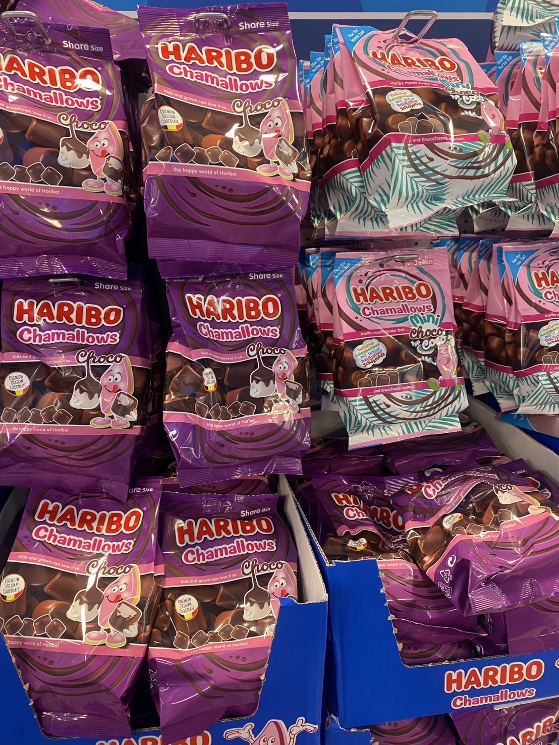 2025/2月現在、日本で大流行しているHARIBOチョコマシュマロが大流行していますね!